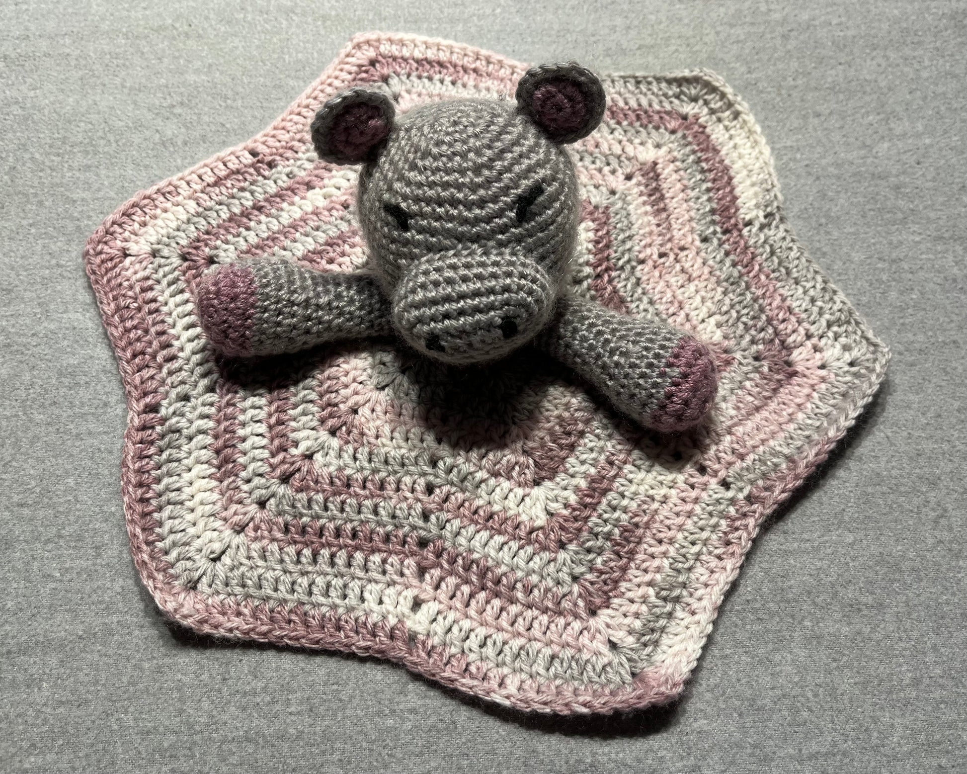 Super cute and very soft crochet hippo lovey. Blanket measures 12"